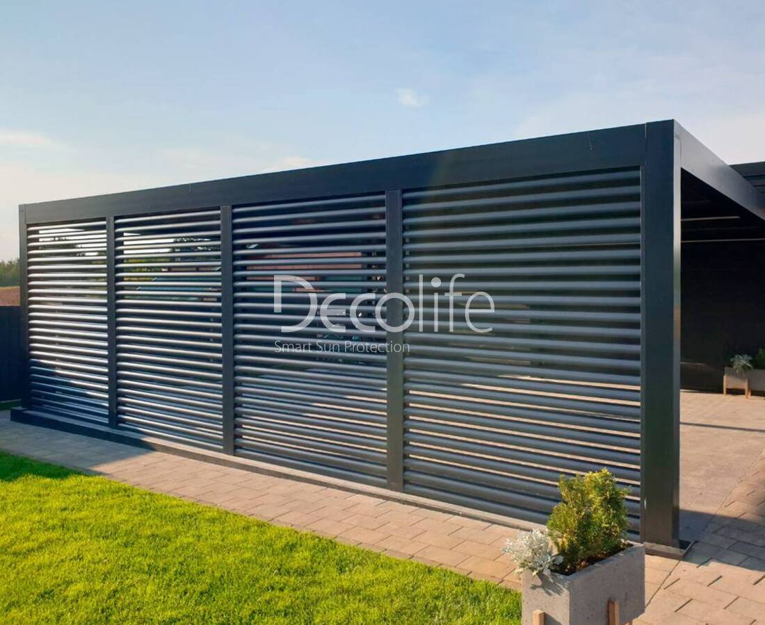 Пергола Bioclimatic Decolife B500-20П + Фасадные жалюзи FZ-44 - г. Браслав